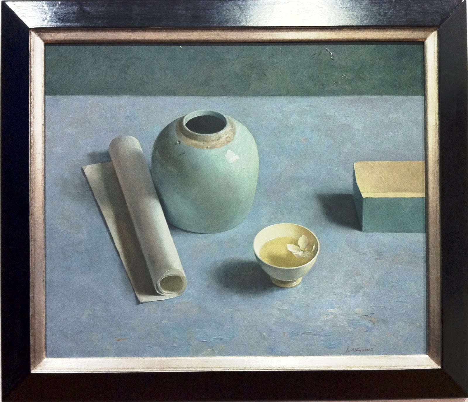 Het Drents museum verzamelt werk van moderne realistische schilders. Nog in de ban van het oude China, werden we aangenaam verrast door dit stilleven, Bloesem in een kopje, van de uit China afkomstige, Amsterdamse kunstenaar, Qiangli Liang (geb.1964).