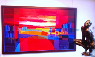 Zojuist hadden we, luttele passen hier vandaan, een bezoek gebracht aan zijn schitterende – in juni 2013 geopende – eigen museum. Een museum in het hart van zijn woonplaats, vol kleurrijke en licht verspreidende schilderijen en andere bijzondere kunstvoorwerpen. De dag ervoor hadden we de vlakbij gevestigde, eveneens rijk gevulde, galerie CHEZ-MOI bezocht. Nog beduusd van zoveel visuele schoonheid, zaten we in een gemoedelijk café aan de markt van Ootmarsum bij te komen achter ons eerste biertje van de dag, een blond en licht product van Belgische monniken.
