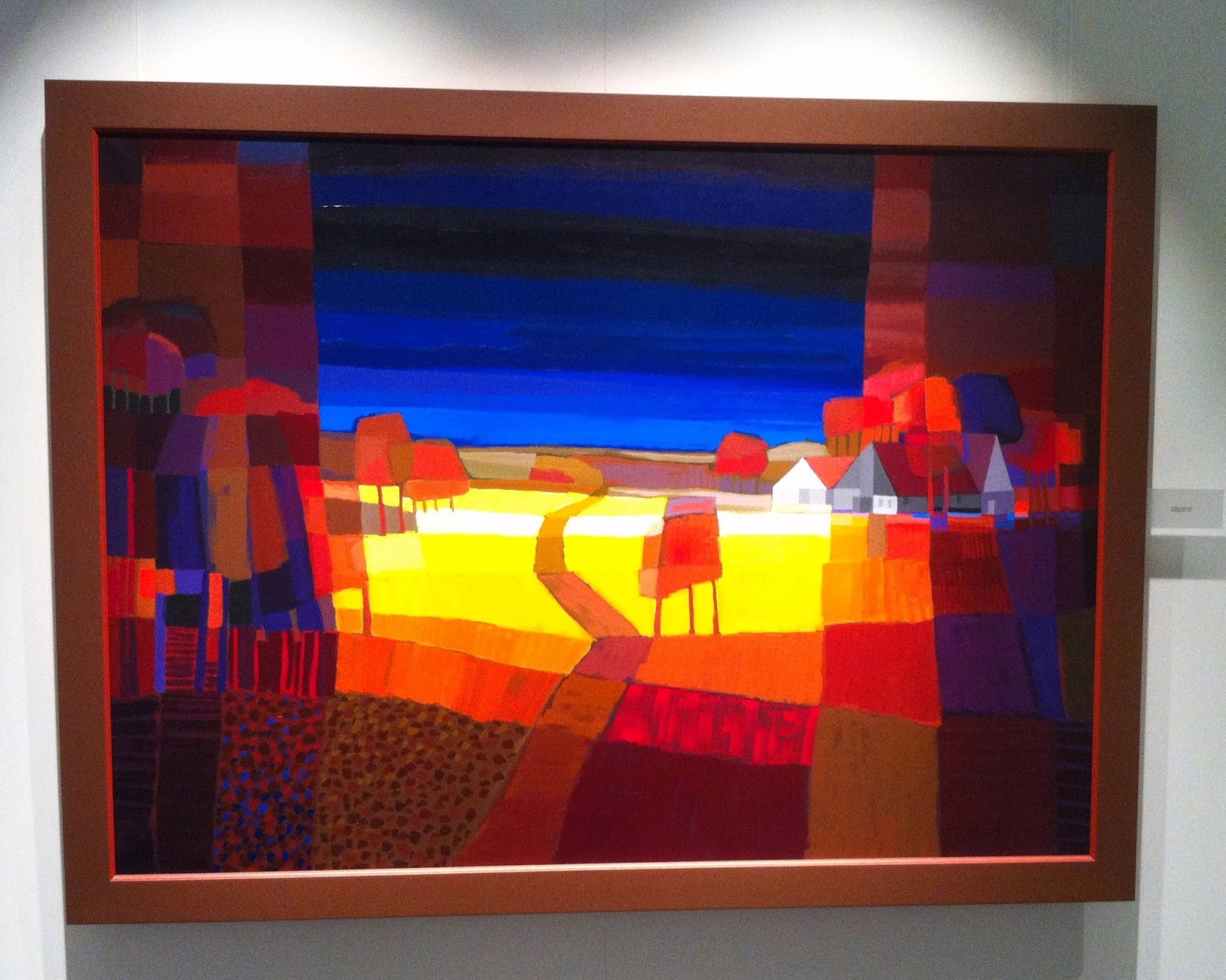 We hadden ons maar met moeite kunnen losrukken van de overdaad aan prachtig uitgelichte zeefdrukken en schilderijen in de ‘kathedraal van licht’, zoals het museum treffend wordt omschreven in de folder voor bezoekers. Mensen schijnen spontaan in tranen uit te barsten bij het zien van Schultens schilderijen. Zover kwam het bij ons niet. Maar we werden er wel diep door geraakt en raakten geen moment verveeld door het feit dat ze voor een groot deel bestaan uit variaties op een en hetzelfde thema: het Twentse landschap.