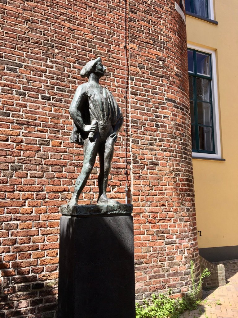 Dit beeld in uitdagende pose van de middeleeuwse Franse dichter François Villon staat op een mooi plekje achter de Utrechtse Domkerk. Het is begin jaren negentienzestig geschonken aan de stad door het Utrechts Studenten Corps ter gelegenheid van een jubileum.