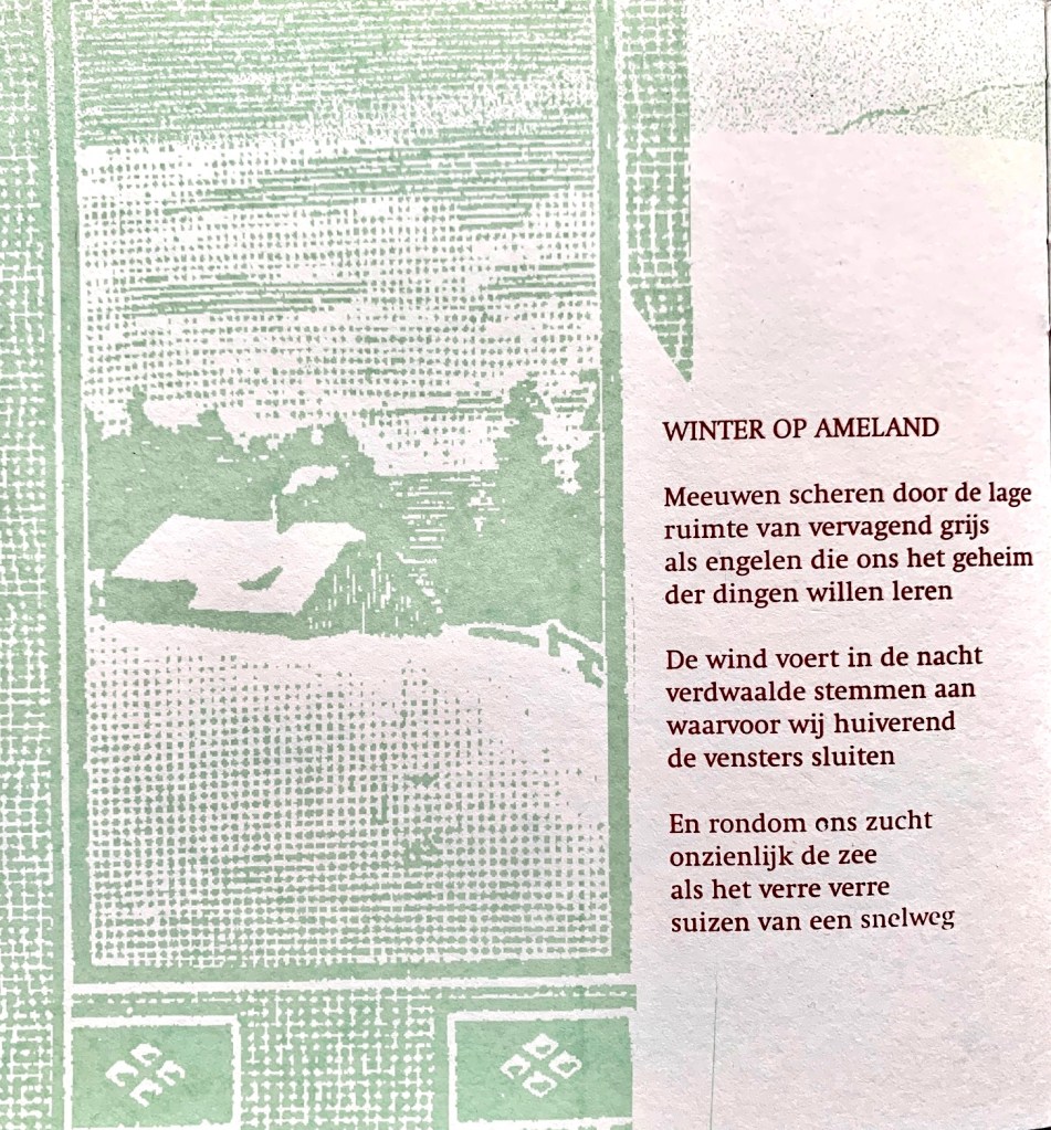 Winter op Ameland 6 januari 20237 januari 2023Leo Mesman Uit mijn dichtbundel Blijf Maar (2004), vormgeving en grafiek Walter Kerkhofs Klik om dit te e-mailen naar een vriend (Opent in een nieuw venster) E-mail Klik om te delen op WhatsApp (Opent in een nieuw venster) WhatsApp Klik om af te drukken (Opent in een nieuw venster) Print Klik om te delen op Facebook (Opent in een nieuw venster) Facebook Klik om te delen op Bluesky (Opent in een nieuw venster) Bluesky Vind-ik-leuk Aan het laden... Gerelateerd