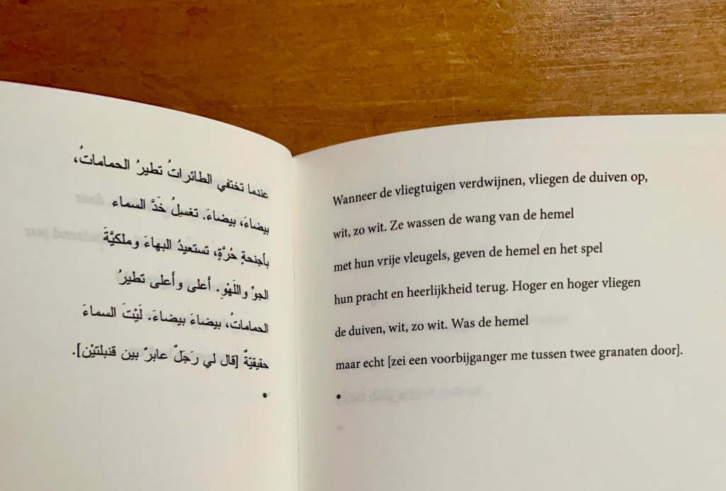 Gedicht van de Palestijnse dichter Mahmoud Darwish (1941-2008) uit zijn dichtbundel ‘Staat van beleg’ (2002), in Nederlandse vertaling verschenen bij uitgeverij De Geus in 2008.