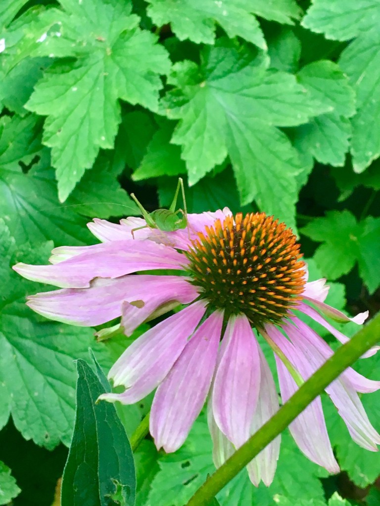 Sprinkhaantje op zonnehoed