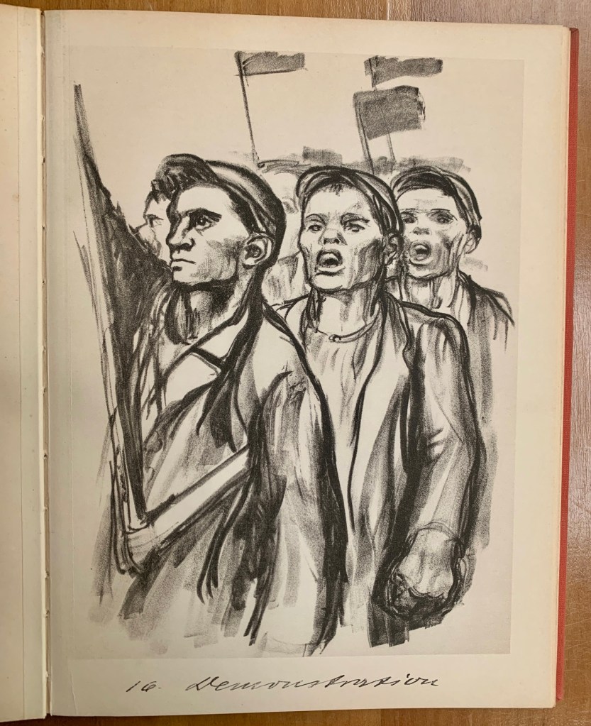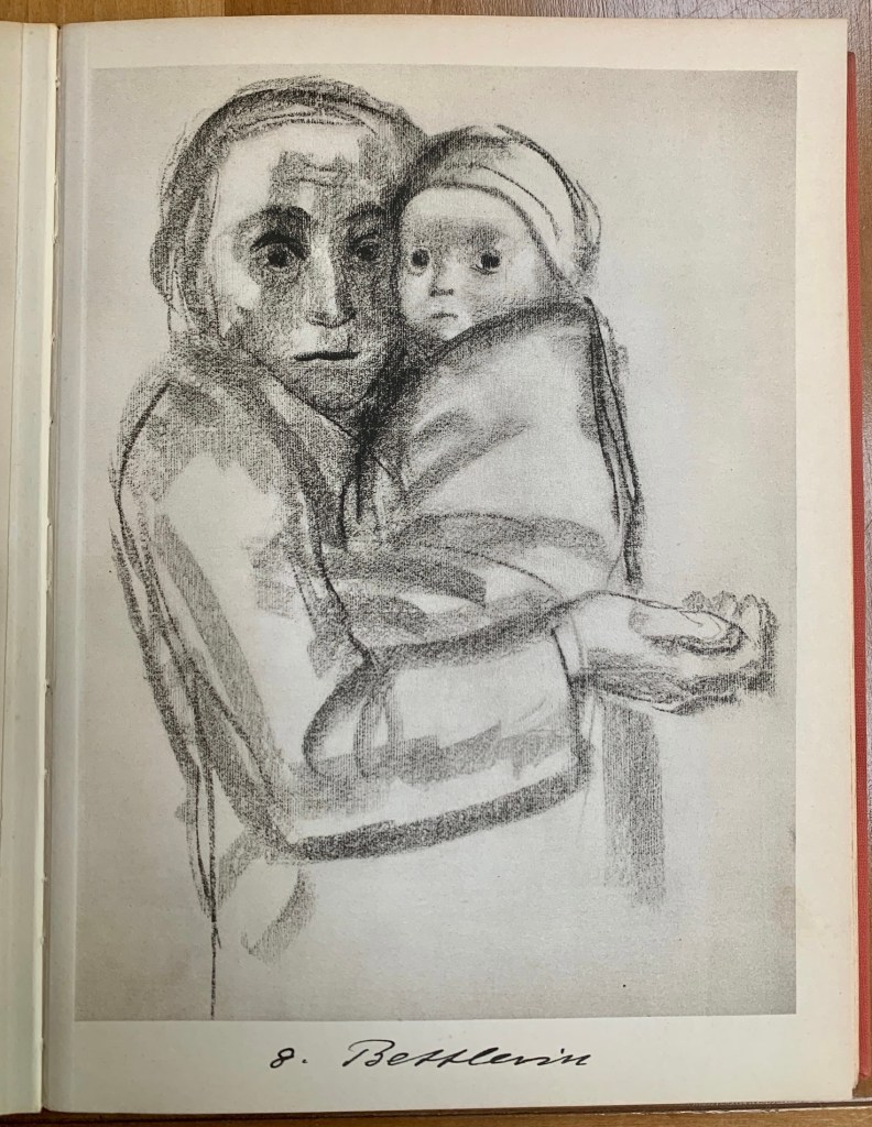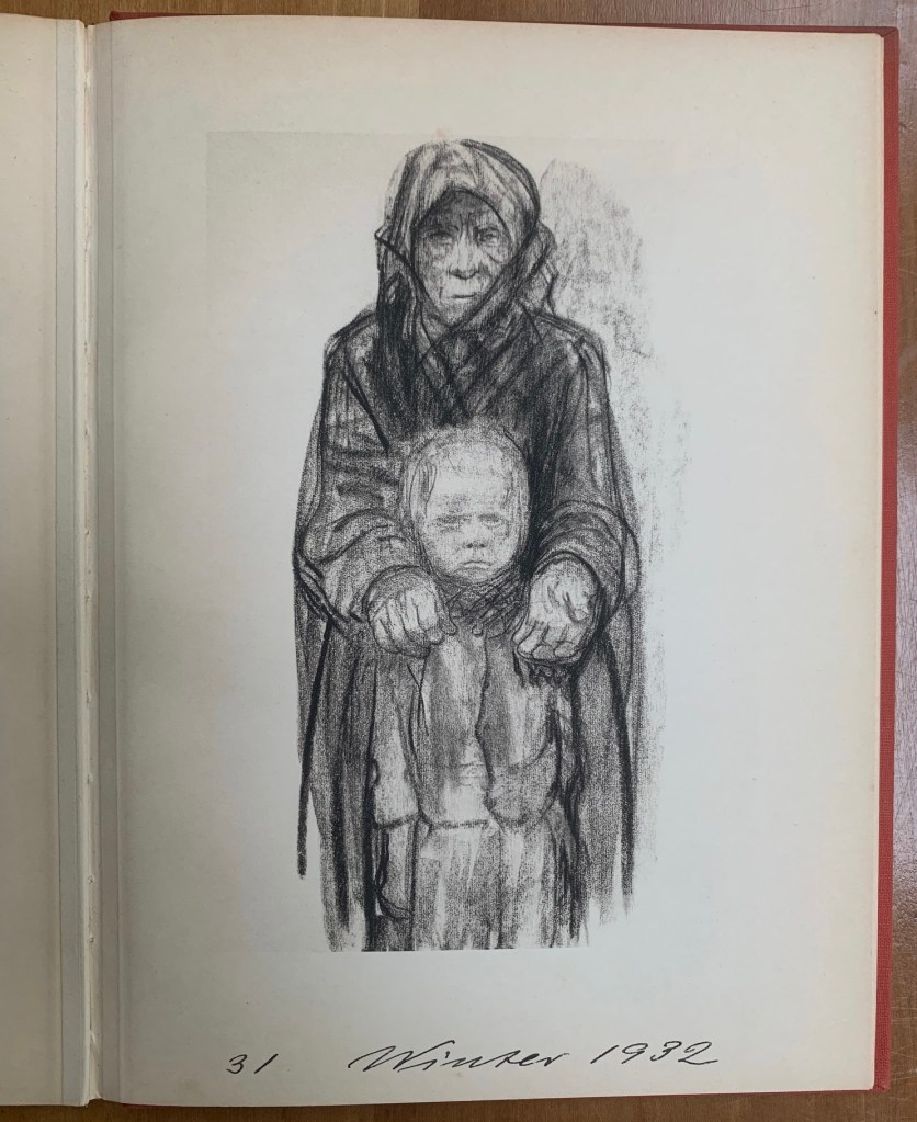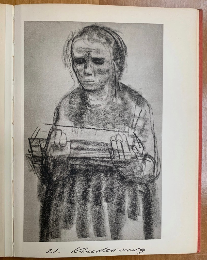 Een selectie van 9 afbeeldingen uit een uitgave met 32 tekeningen en grafische werken van beeldend kunstenaar Käthe Kollwitz.