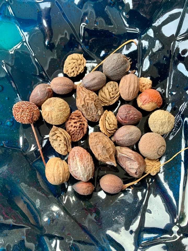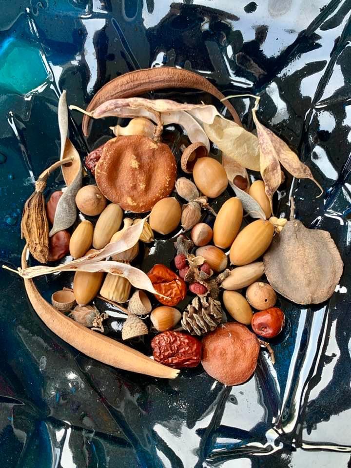 In de natuur en in onze stadstuin verzamel ik graag noten, zaden en vruchten.